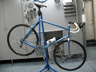 Well, maybe not the wild, but a pretty neat car parks in that garage. And the man-sized Pegoretti is darn nice too. Thanks for the pic, Big John. BTW, you need some more tools on that tool board. I’ve got a thing for big bikes and this one is extra clean and big. Big bikes like this make standard 53/39 rings look compact and 700c wheels look like 650c.