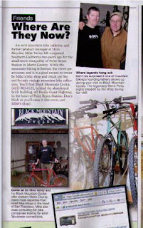 When it rains, it pours. Not long ago, bikeradar.com had pictures and an interview with me on-line. And now in the May 2009 issue of Mountain Bike Action, there is a page with some info and pictures of the shop! My buddy Jimmy Mac (thanks!) was visiting over New Year’s and stopped by the shop. And it was way cool that Steve Potts stopped by while Jimmy Mac was there. How cool is it that he put a bit about the shop in the magazine! Here’s a scan of the page (hope I’m not breaking any copyright rules – avert your eyes, Jimmy Mac).