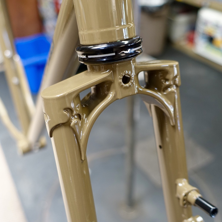 The V6.1 frame differs from previous generations with a new fork crown from Long Shen – same twin plate style aesthetics with a bit more tire clearance. Other features include clearance for up to 50 millimeters of rubber and horizontal dropouts to fine-tune chainstay length or run it as a single-speed.