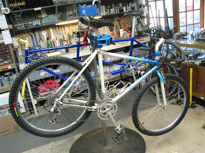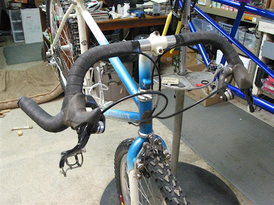 Local bike. Lots of miles in its tubes. Lots of miles in its future. The bike had been sitting in neglect for the past couple of years and needed a throrough cleaning, new cables, fresh grease in all the Grease Guard ports, and new bar tape.